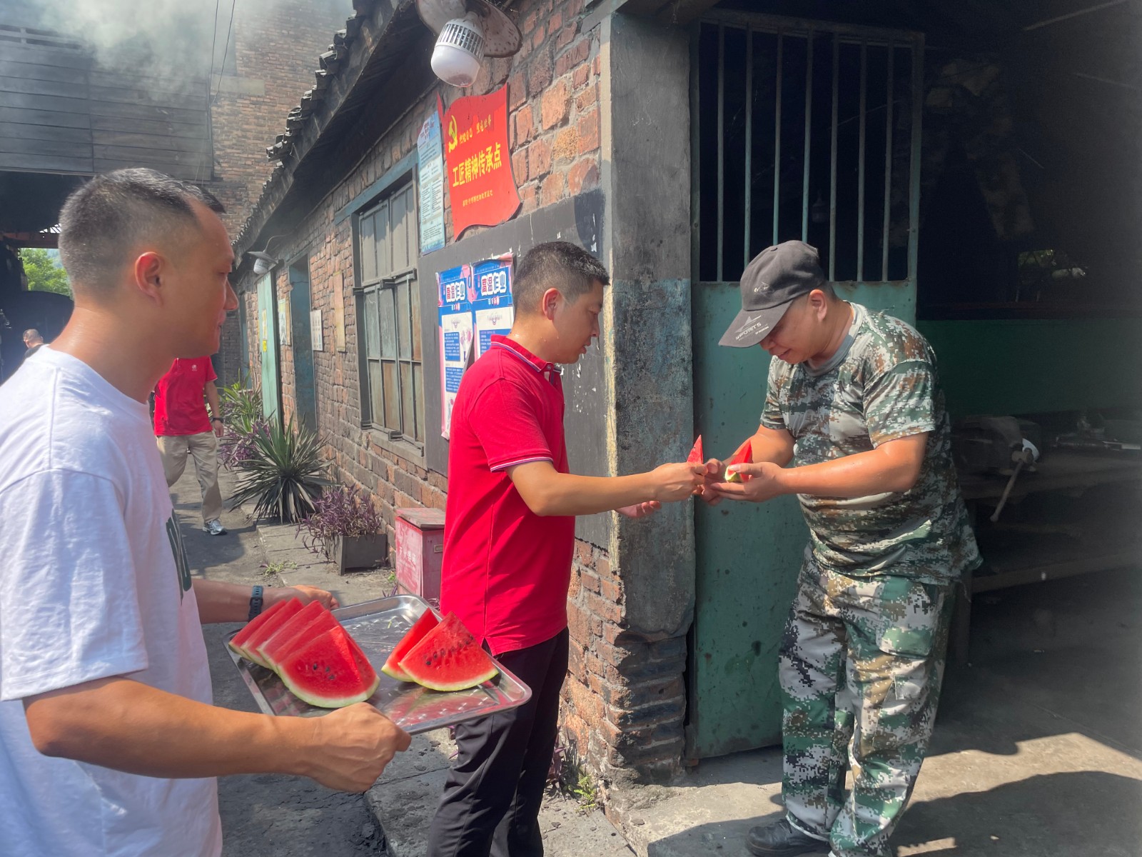 早上剛9點,嘉陽煤礦隊天錫井工業(yè)廣場就已經(jīng)熱浪襲人,機電隊鍛鉚班車間內(nèi)已是一番熱火朝天的景象。為井下趕制的鉆機支撐套管、拴攔、風(fēng)門、工鋼棚制作等時間緊、任務(wù)重,為保障安全高效完成這些工件,班組克服高溫帶來的影響及時調(diào)整作業(yè)時間,科學(xué)合理安排工作量,組員之間團結(jié)配合,全力保障生產(chǎn)任務(wù)的完成。煤礦工會為車間配備了充足的風(fēng)扇、清涼藥品等,加強現(xiàn)場安全提醒;女工委每天在井口準(zhǔn)備了西瓜、涼糕等,將清涼與關(guān)愛傳遞給高溫下堅守崗位的職工們,切實保障職工身心健康。